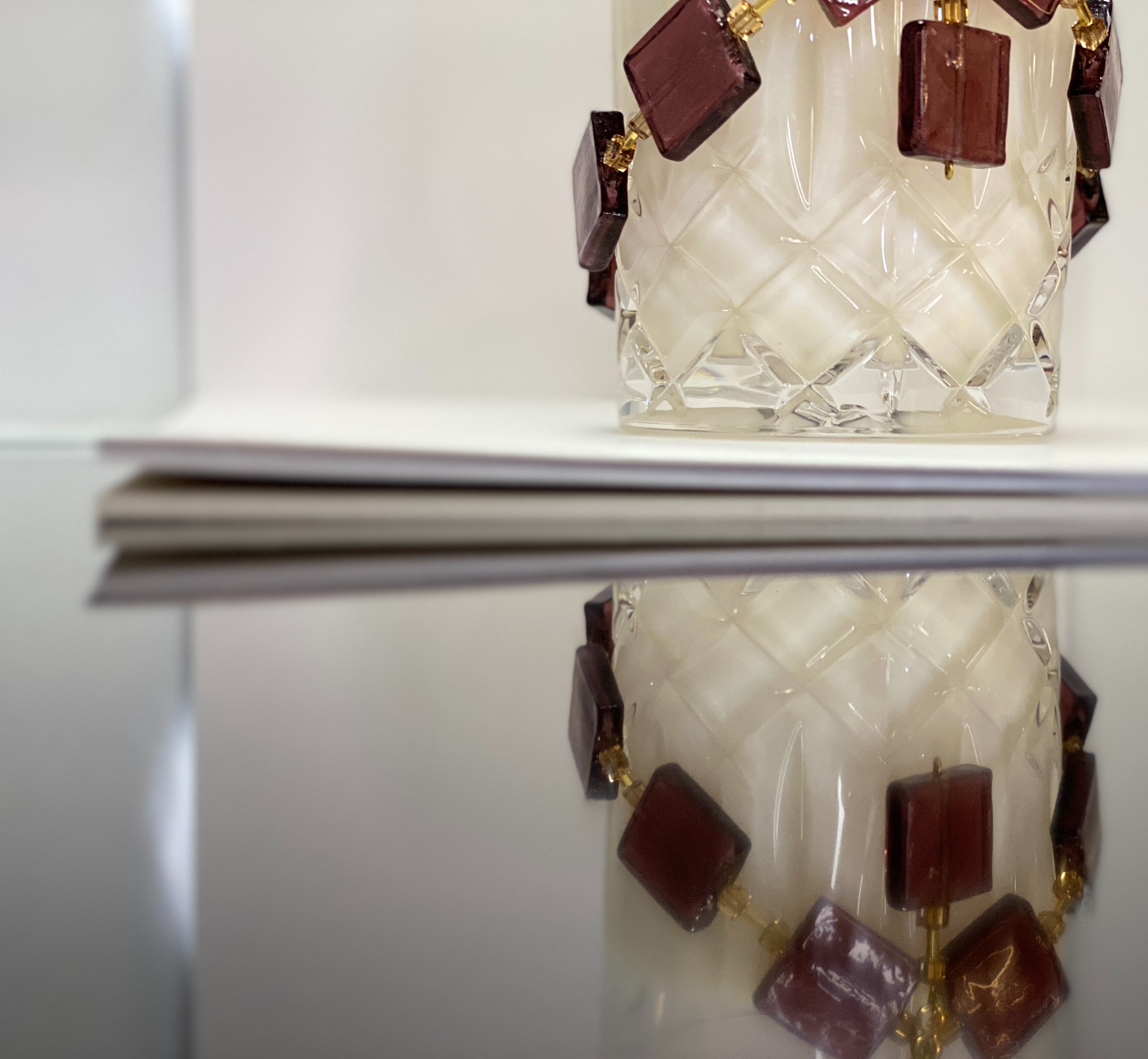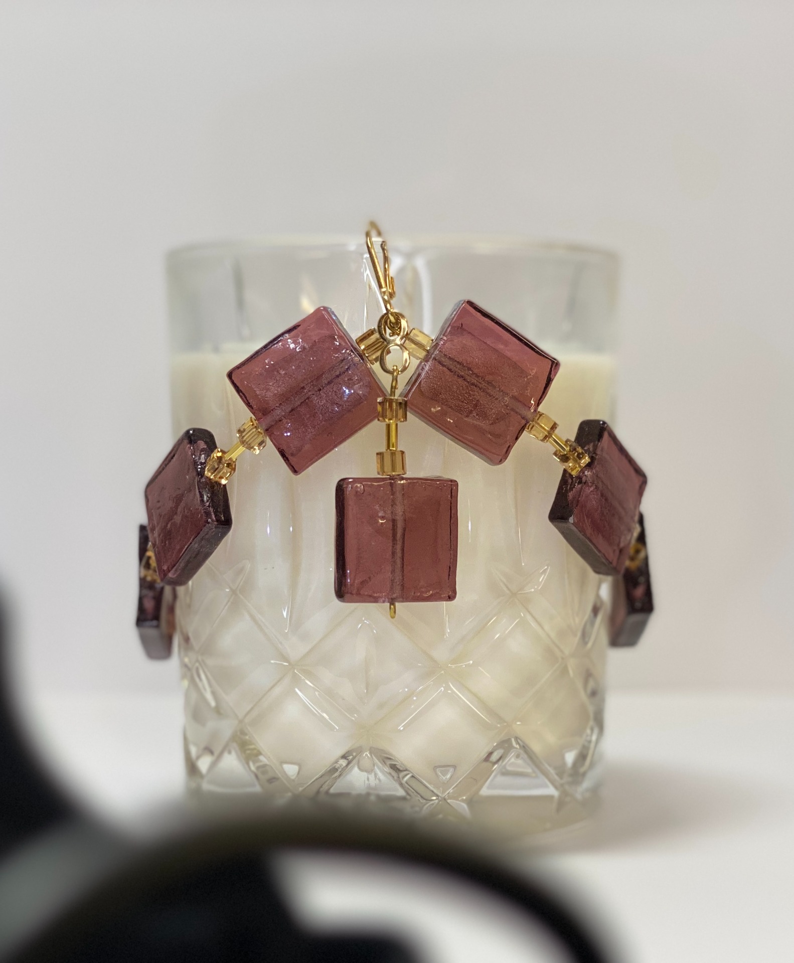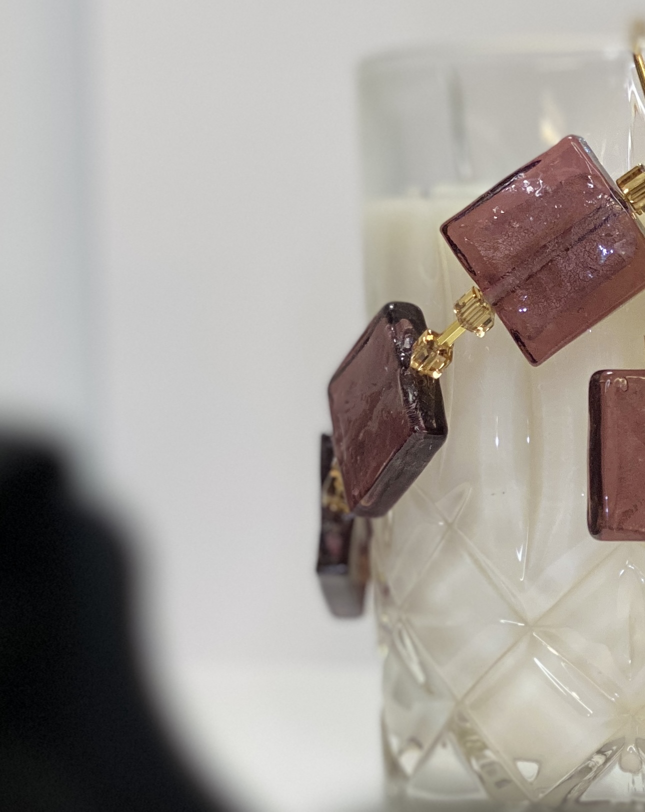Handmade ornament with foil glass beads and Swarovski cube beads.